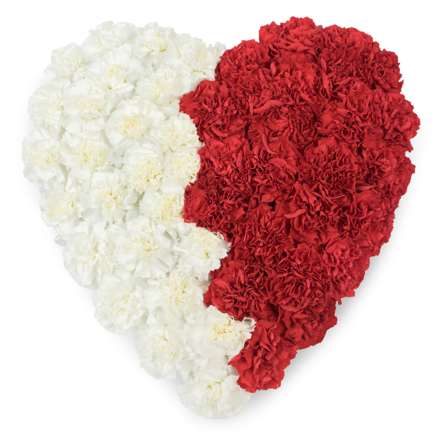 Our sophisticated heart-shaped bouquet features a tasteful combination of white and red carnations, perfect for conveying your heartfelt emotions. Each bloom is hand-selected to ensure the utmost freshness and quality.